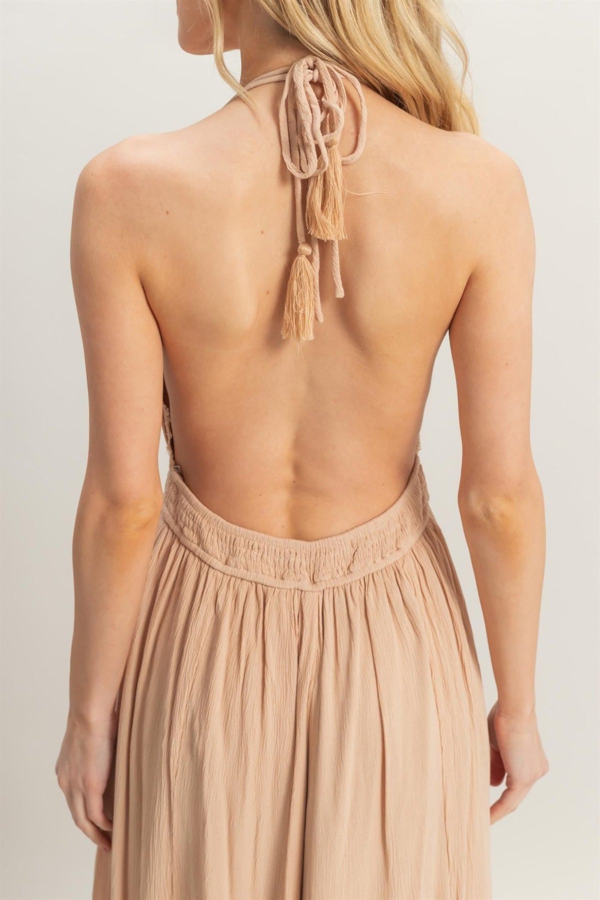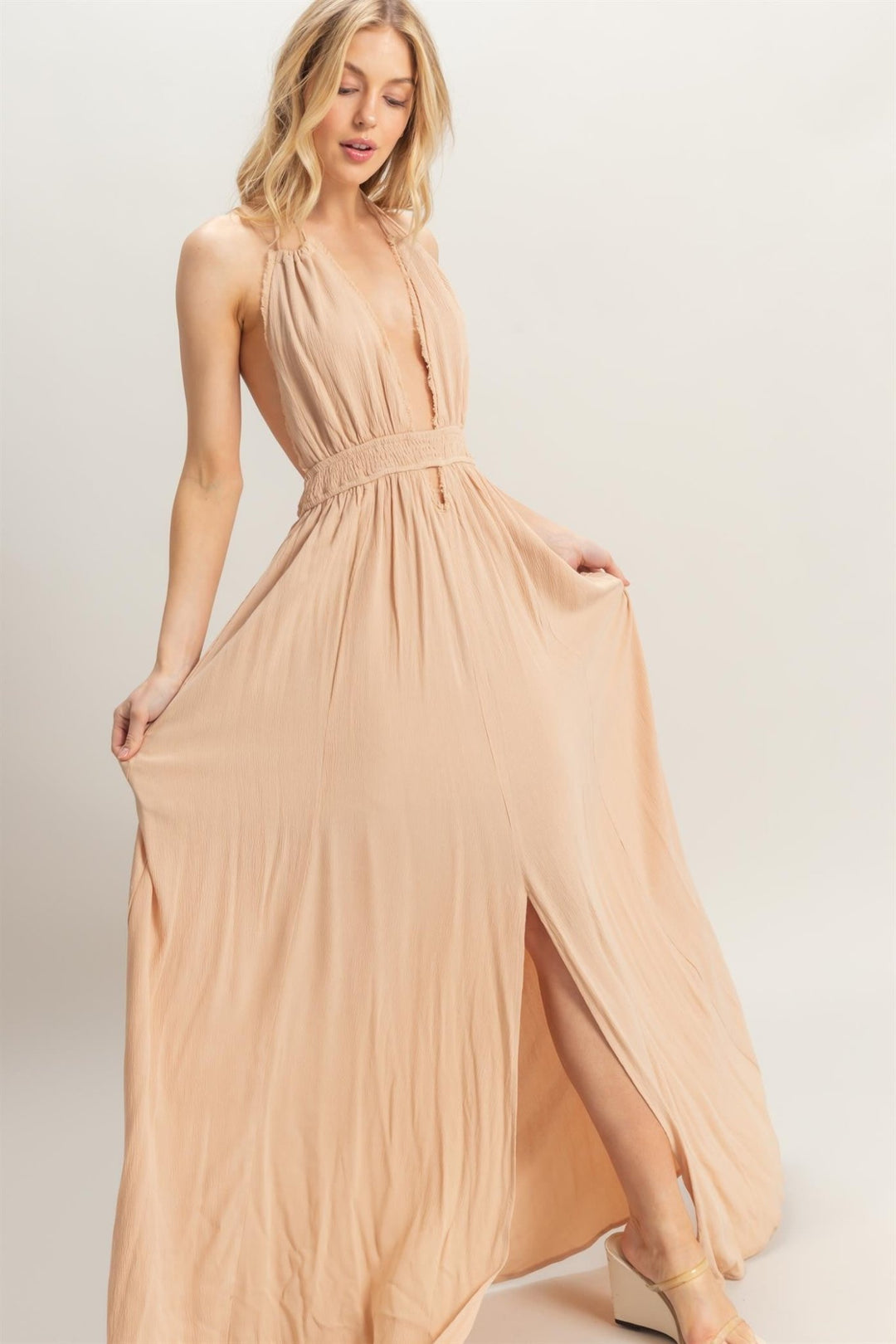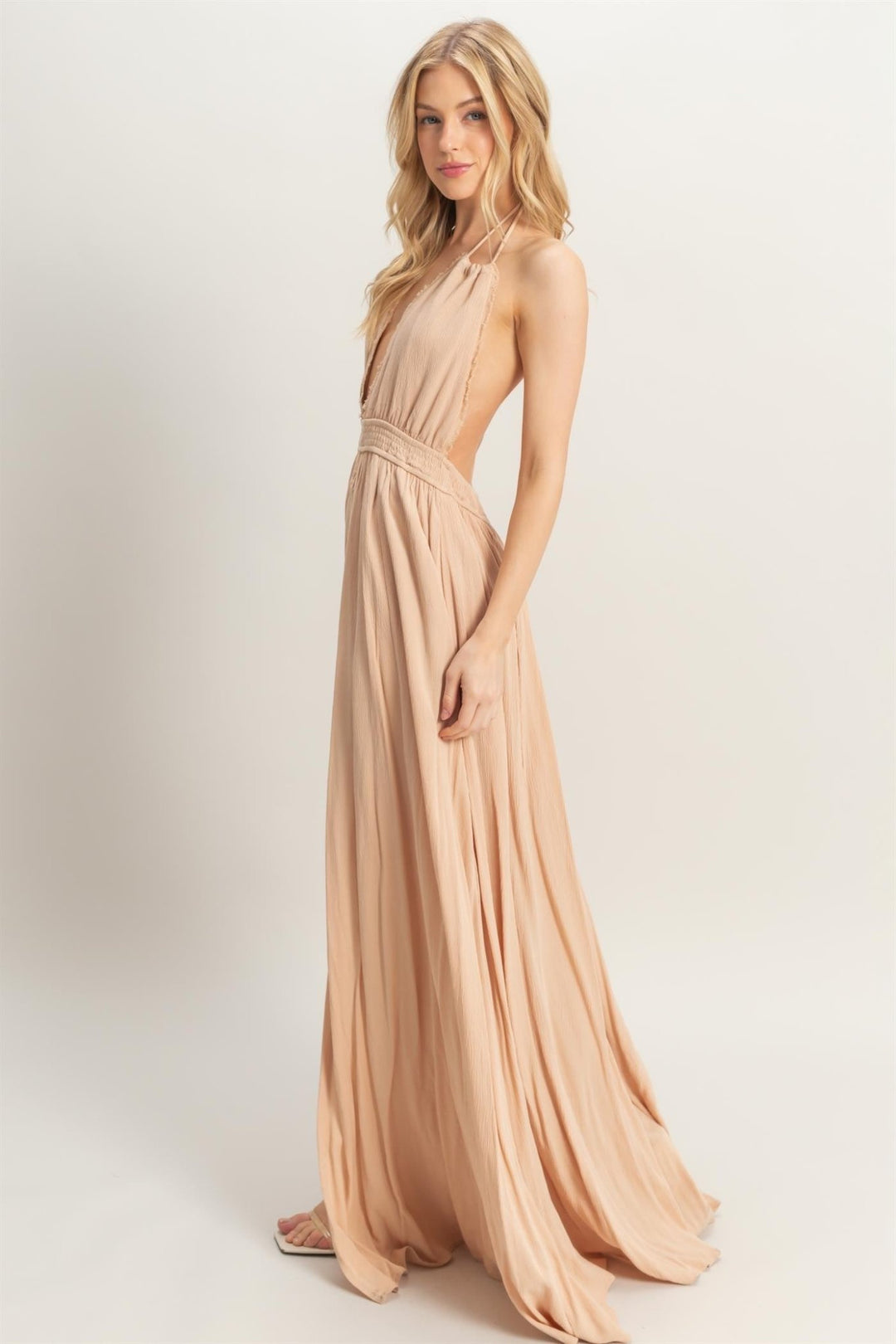Beige Halter Flowy Maxi Dress