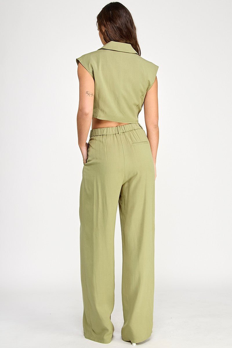 This Beige Linen vest and pant set combines style and comfort in a versatile outfit. The linen fabric provides a solid and durable feel, while the sleeveless vest with lining adds a touch of sophistication. The elastic back waist on the pant ensures a comfortable fit, and the hook and eye with zipper closure offers convenience. Made with a blend of 70% viscose and 30% linen, and 100% polyester lining for a quality look and feel.