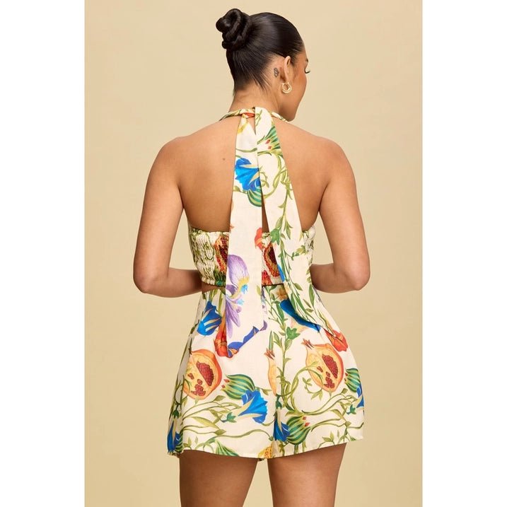Smocked Print Crop Top Bubble Mini Skirt Set