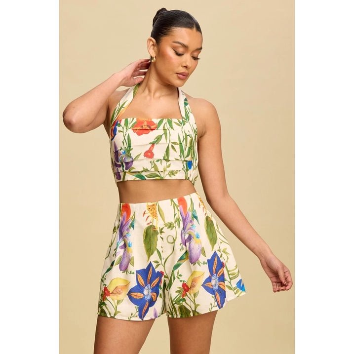 Smocked Tube Crop Top & Elastic Waist Shorts