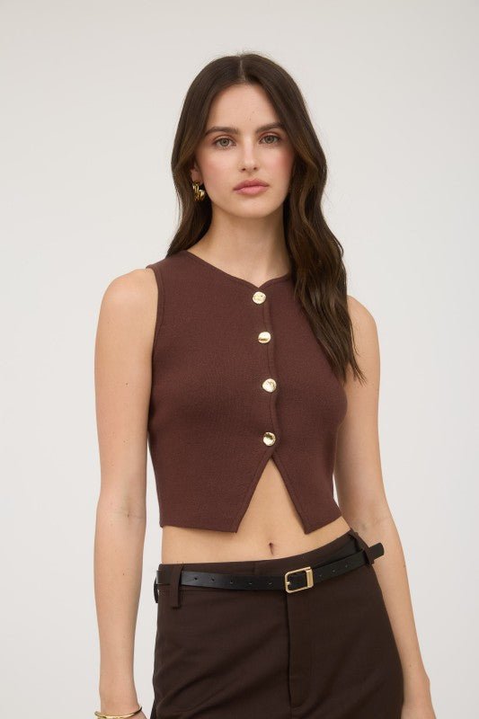 Brown Button Down Sleeveless Sweater Vest