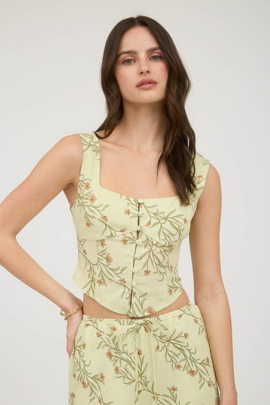 Floral Corset Detail Button Down Linen Crop Top