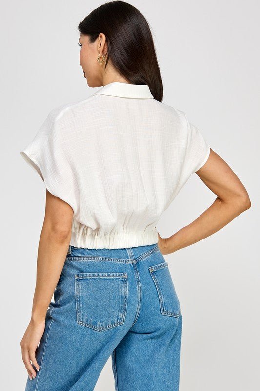 Linen Button Down Split Hem Cropped Vest