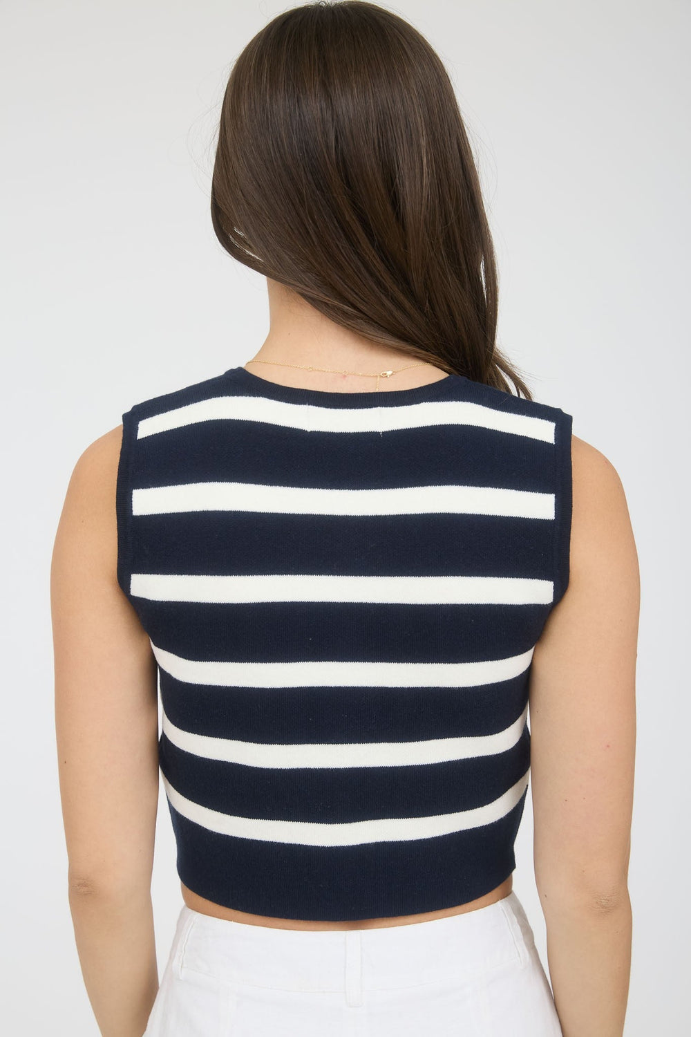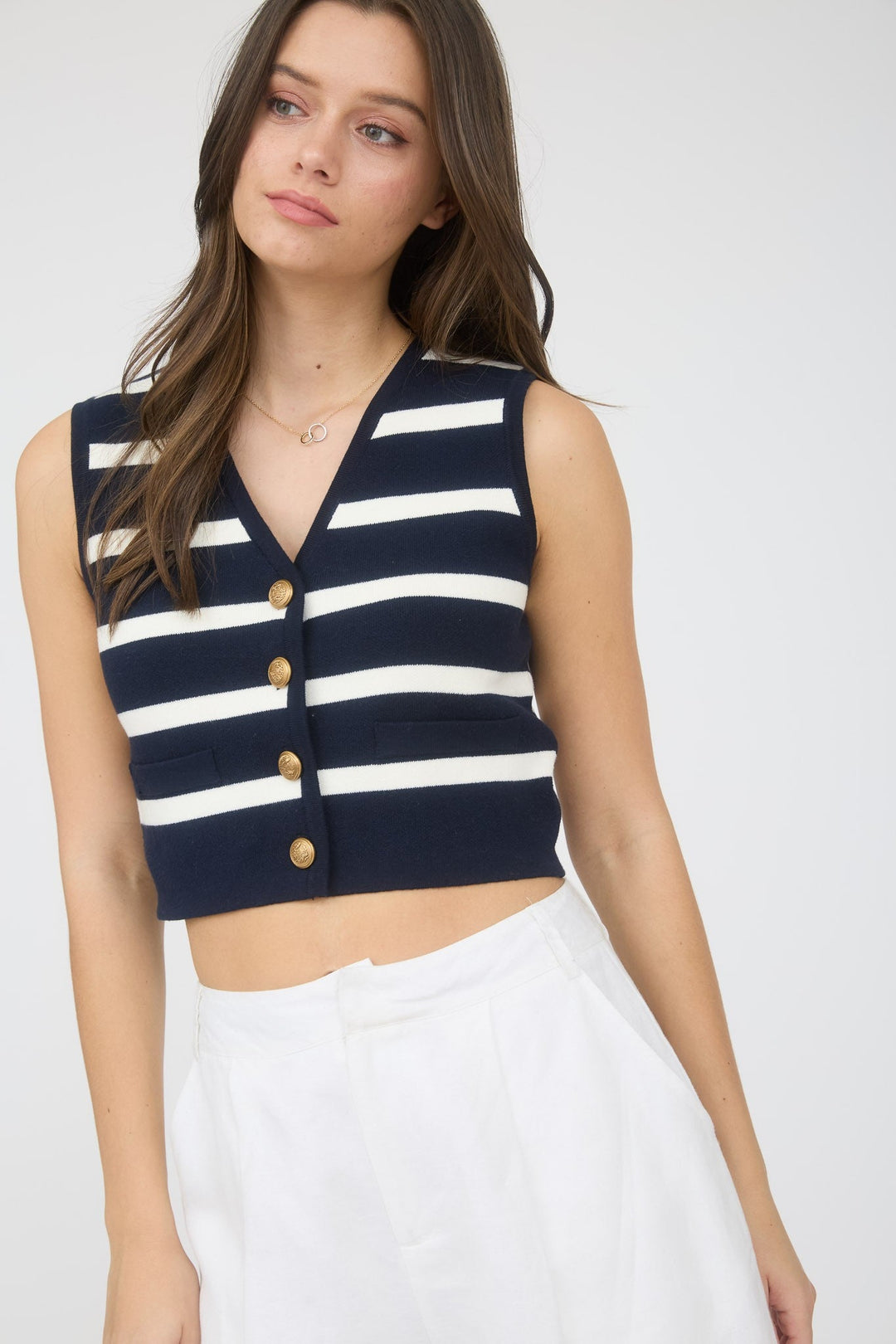 Stripe Gold Button Cropped Knit Sweater Ves