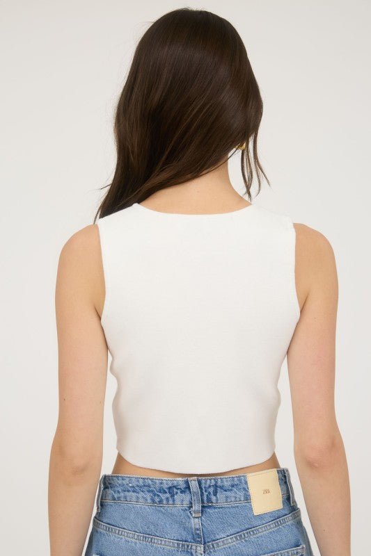 White Reversible Square Neck Knit Tank Bodysuit