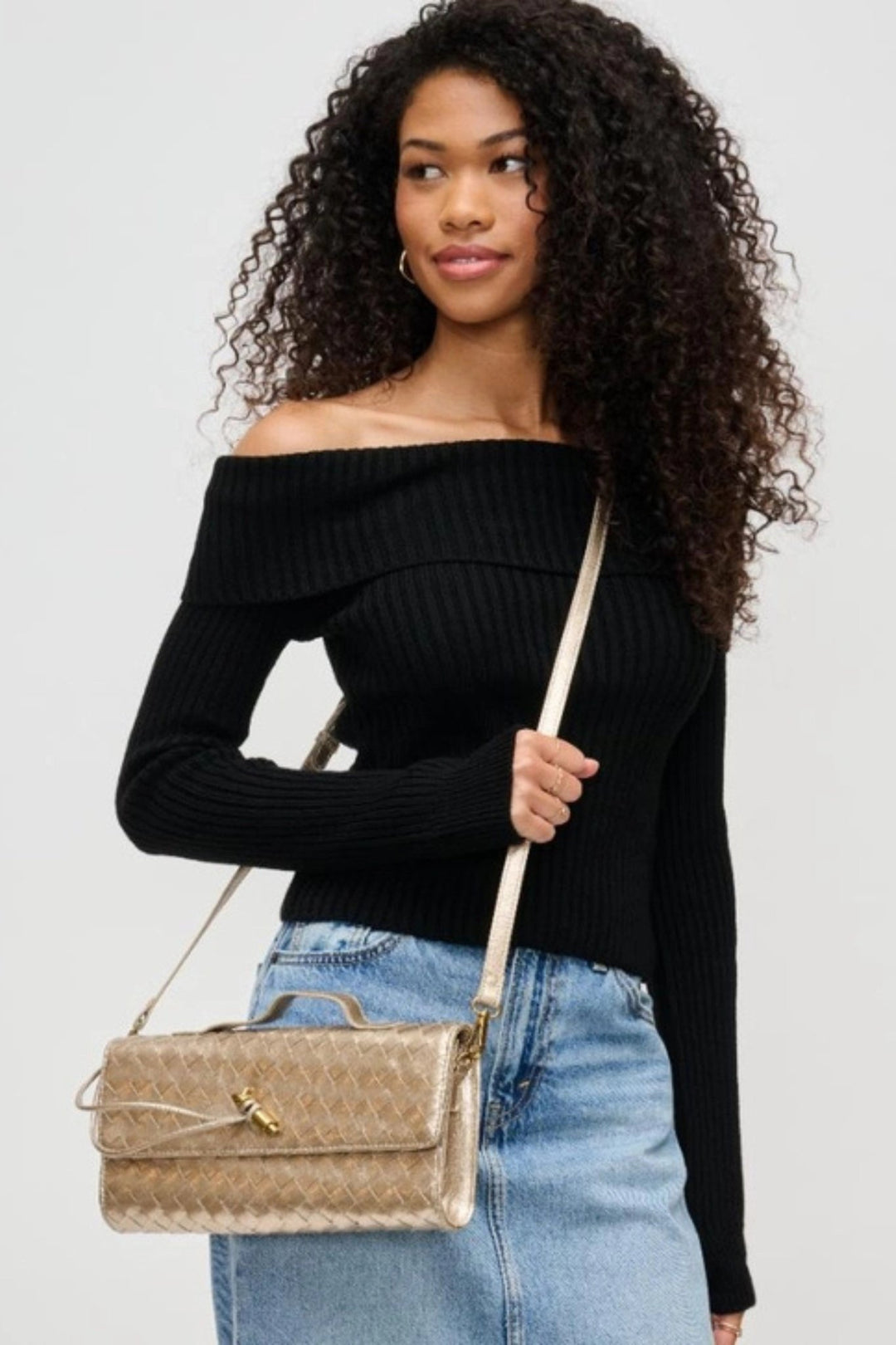 Ancora Red Soft Ribbed Knit Off Shoulder Dress