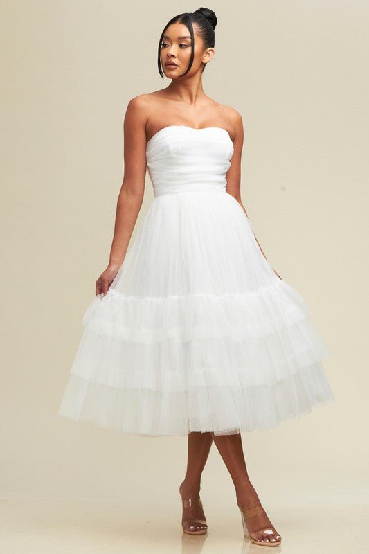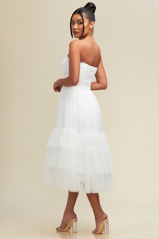 Be the queen of the party in this white mesh midi tiered dress! The detailed tiers and body hugging silhouette give you an effortlessly stylish look that makes you look fabulously fierce with minimal effort. So go ahead, get your "meshy" on and be the belle of the ball!