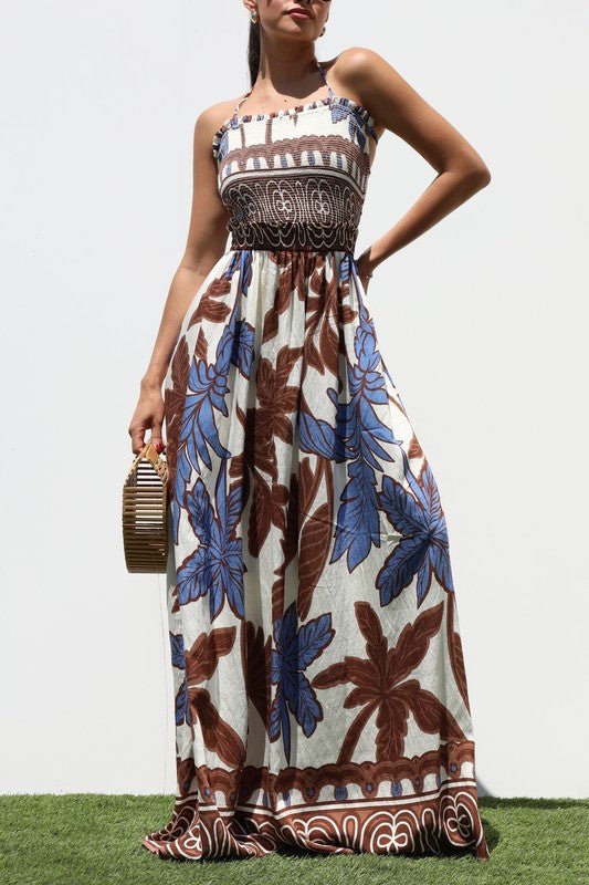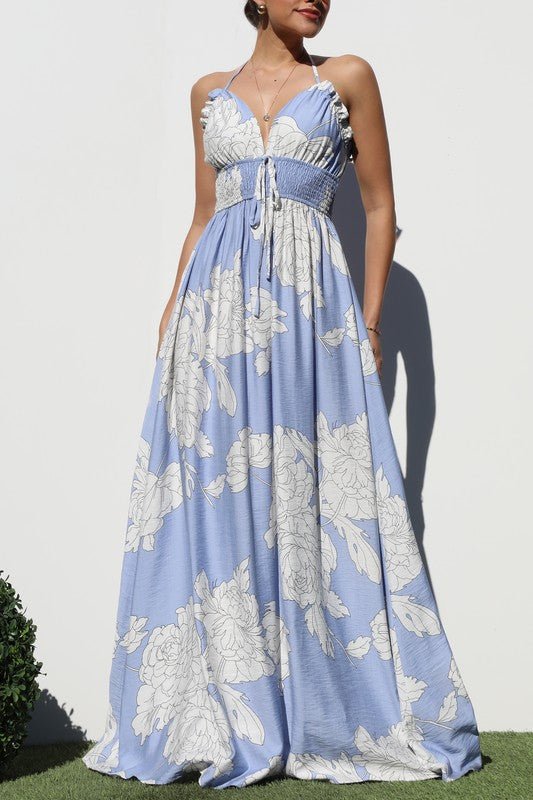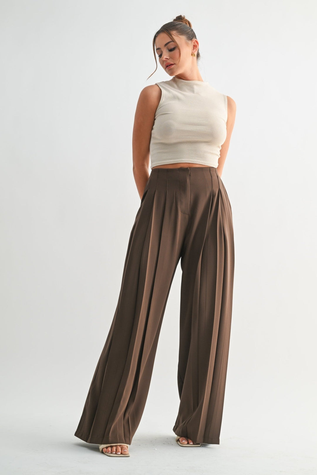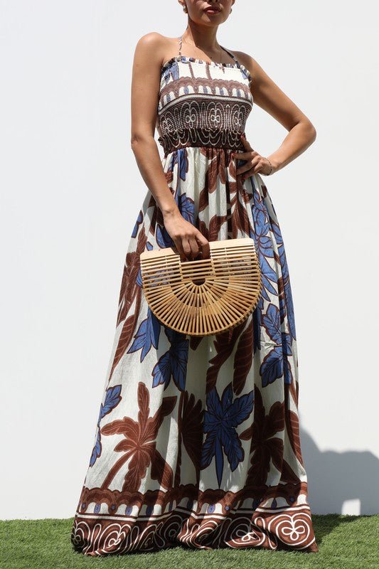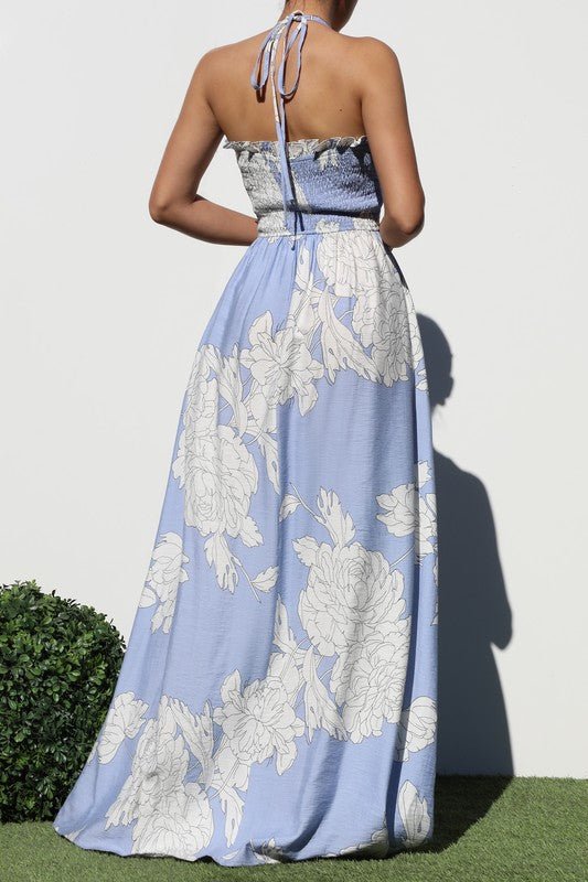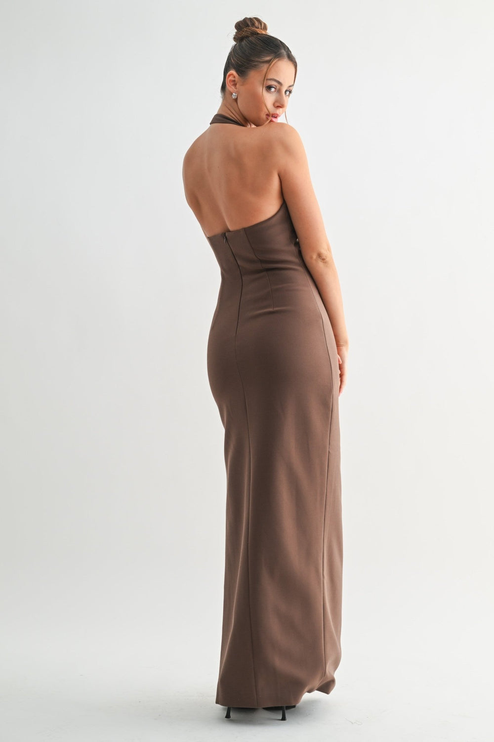 Bead Cowl Neck Halter Wide Leg Jumpsuit
