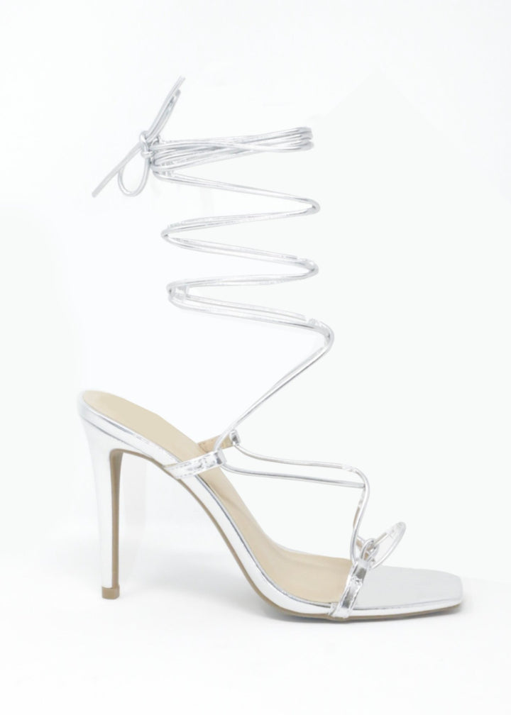 Women's lace-up silver heel, ANA silver heel by Alexandria Brandao Shoes.