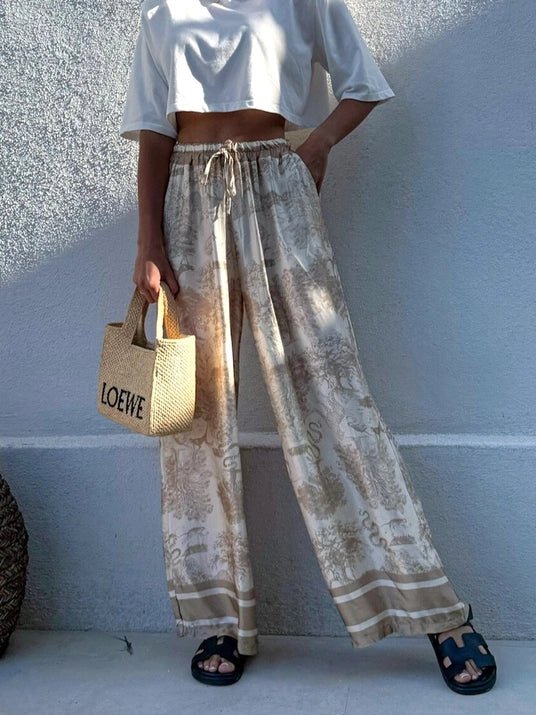 Khaki Bohemian Ethnic Garden Ecru Tie Pants