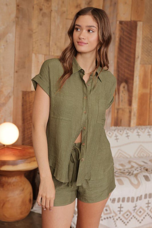 Boho Pinball Print Buttoned Shirt & Shorts Set