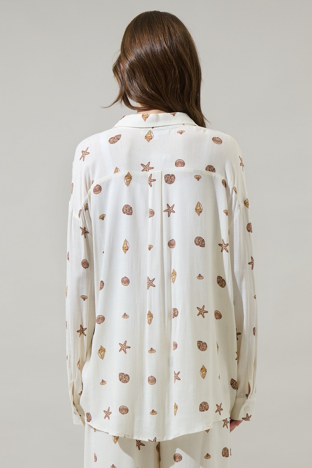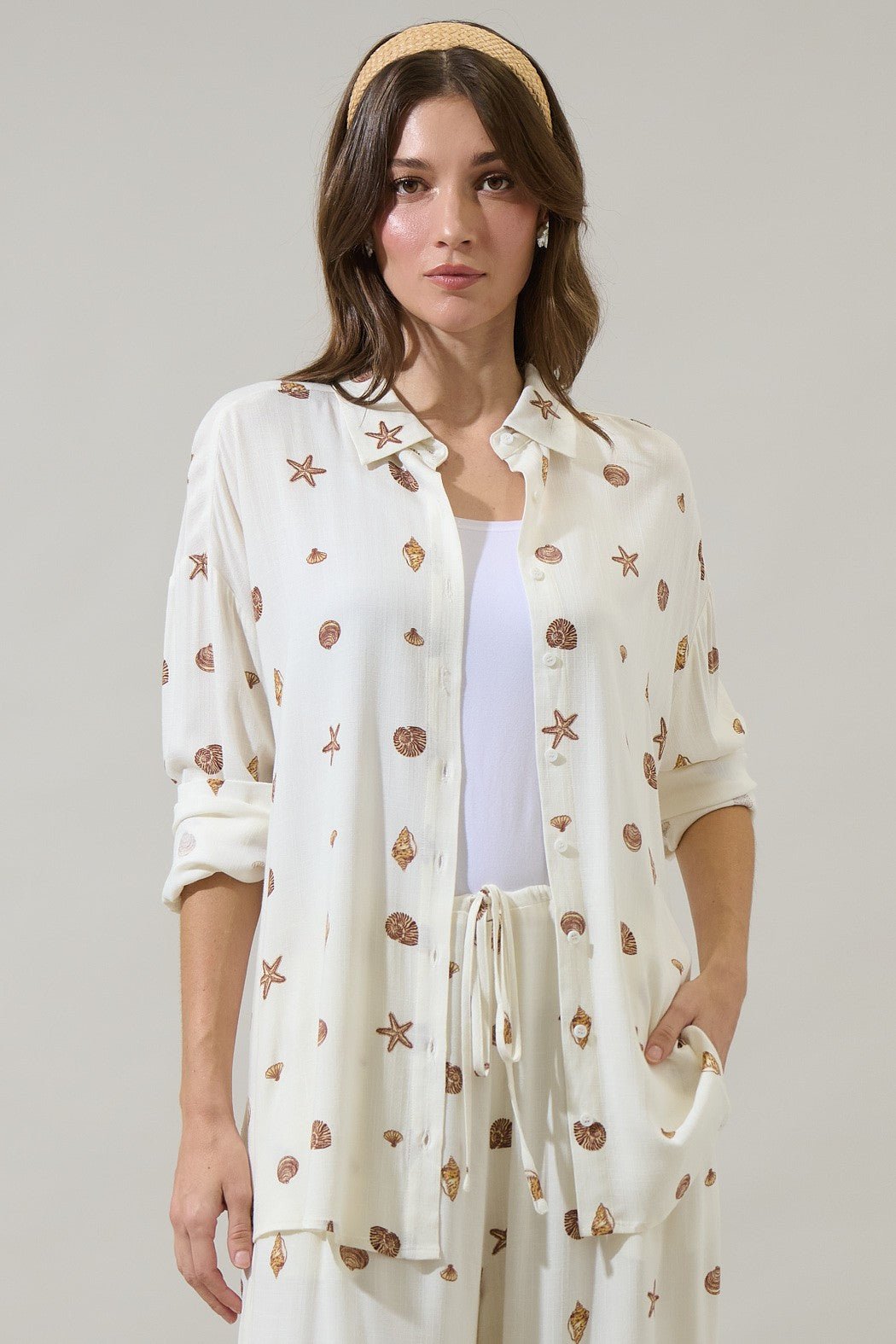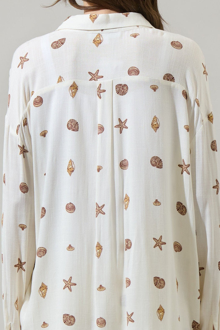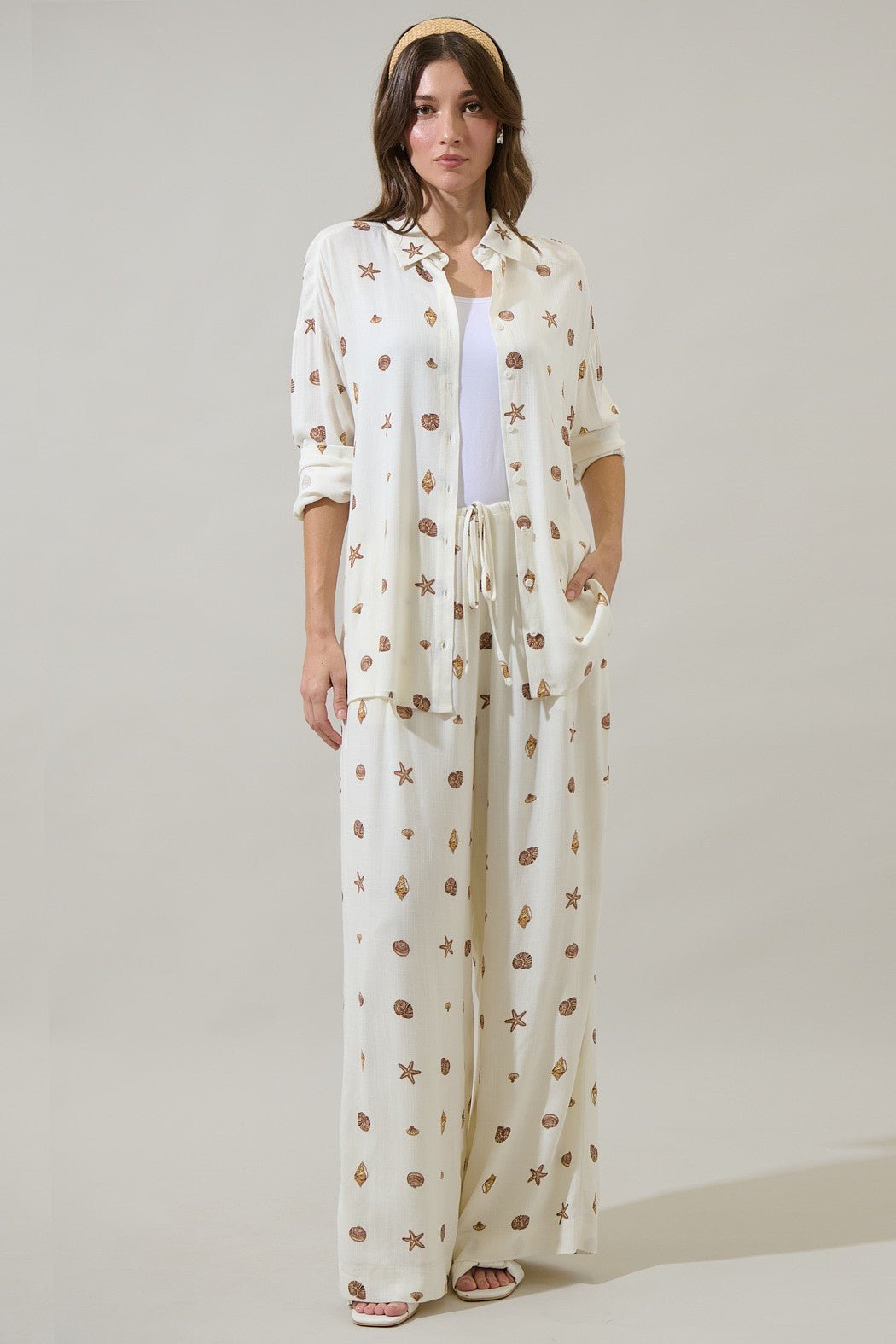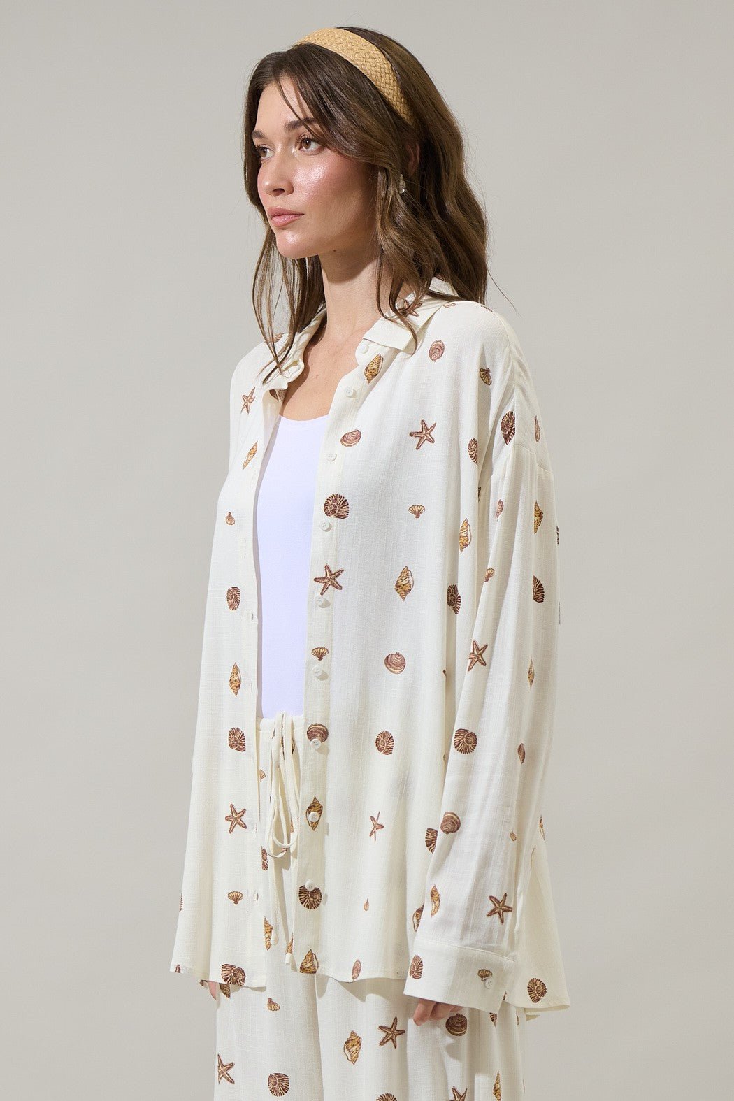 Walk around the beach waves and enjoy the sunset, wearing the Cerise Shells Dalton Boyfriend Button Down Shirt. It features essential details like its collar and button cuffs, along with cute little quirks. A functional button front makes it easy to get in and out of and its oversized, relaxed fit allows for mobility. Pair it with its matching pants for a full look.