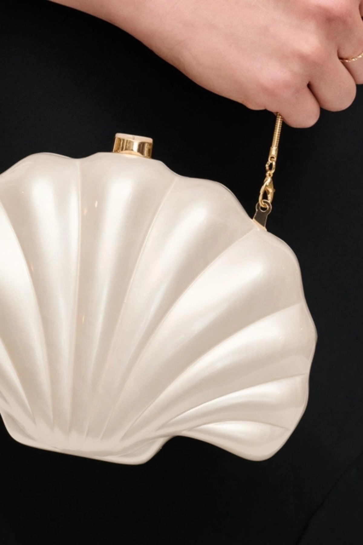 Embrace a touch of whimsy with the Attina Evening Bag, a stunning blend of elegance and playful design. Its unique shell-inspired silhouette adds a captivating statement to any ensemble, seamlessly transitioning from day to night.