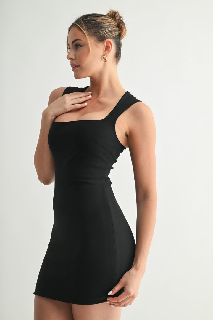 Black Square Neck Mini Dress - STYLED BY ALX COUTUREDresses