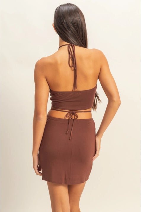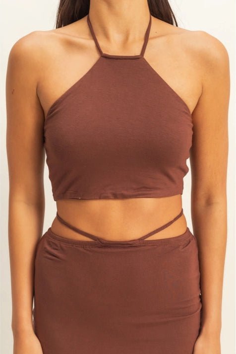 Two-Piece Set Featuring A Halter Neck Crop Top With Tie-Fastening At The Back, Fitted Bodice, And Cropped Hem.