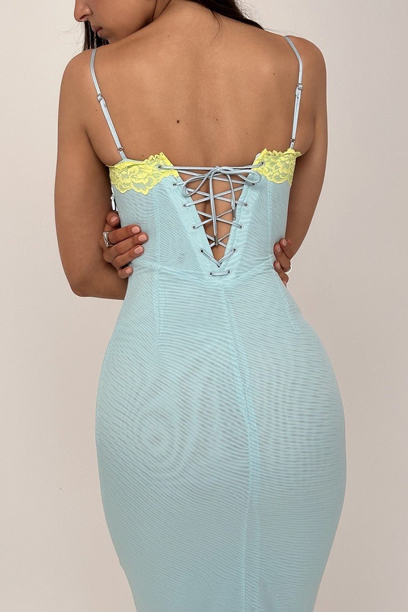 Baby Blue Lace Trim Bodycon Maxi Dress