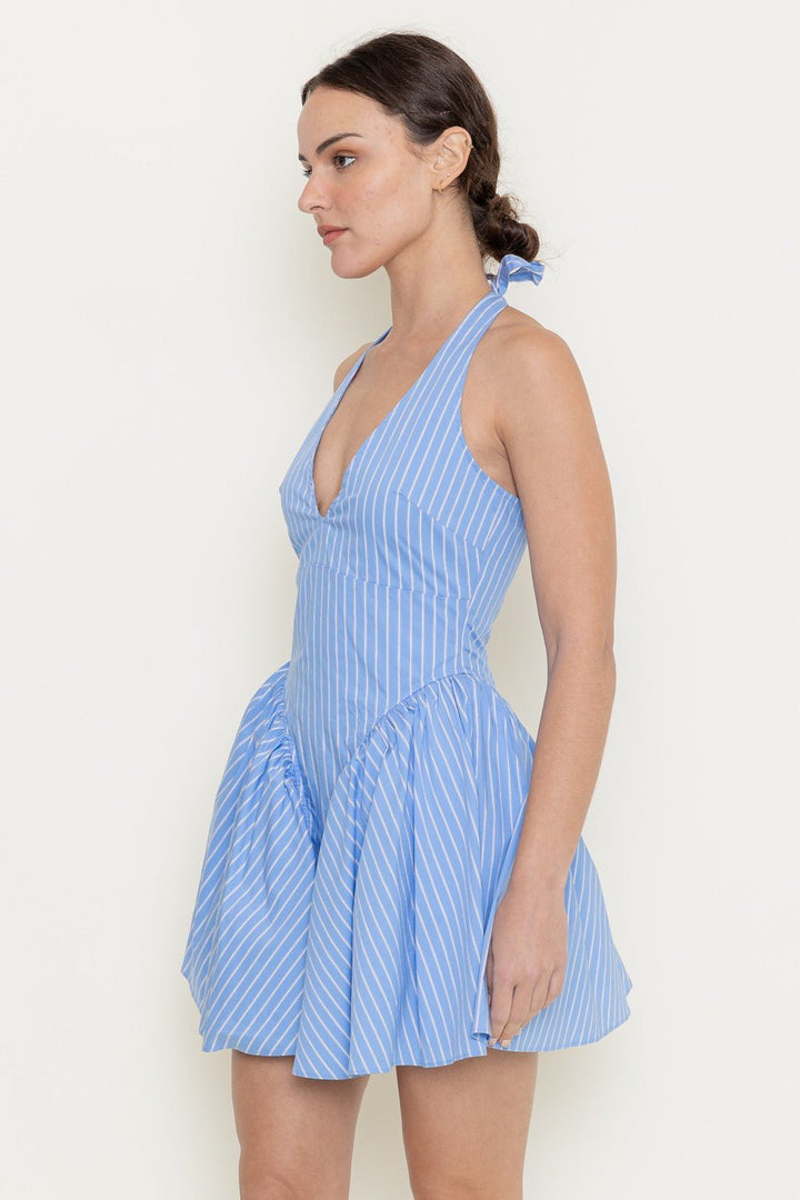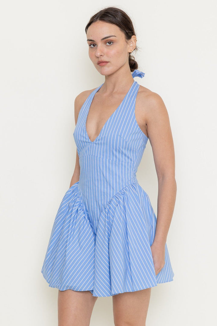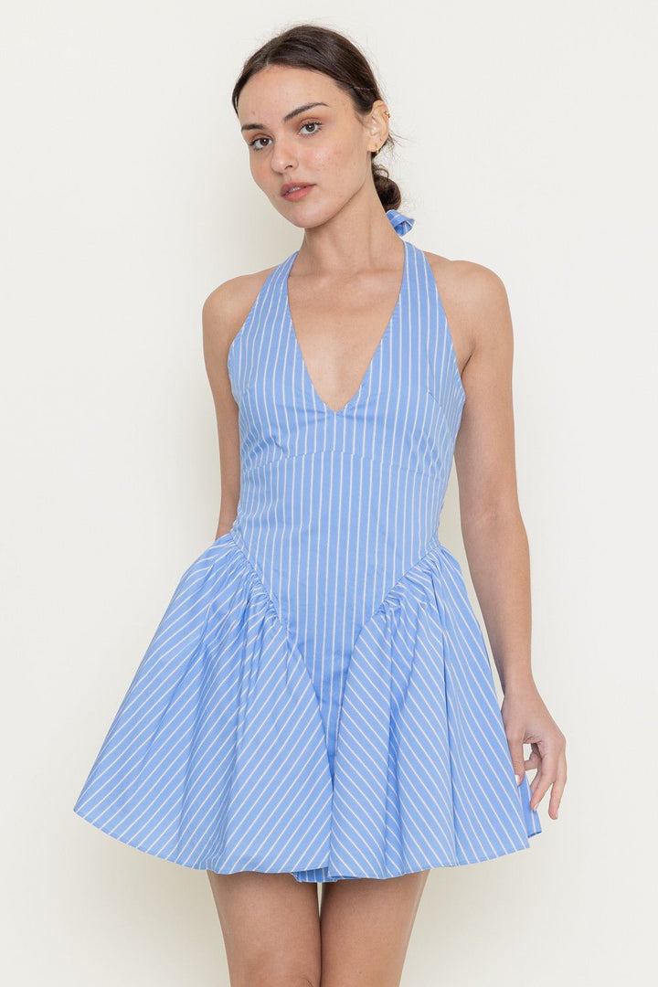 Open Back Stripe V Necklinebubble Hem Mini Dress - STYLED BY ALX COUTUREDresses