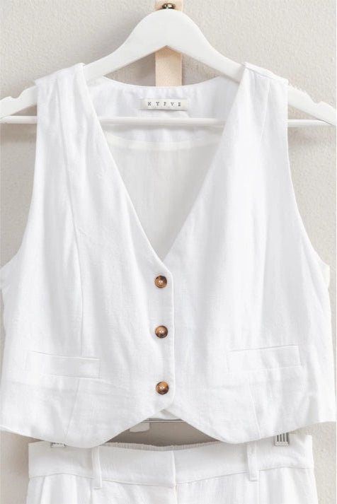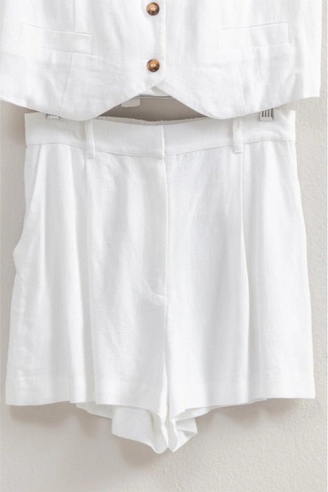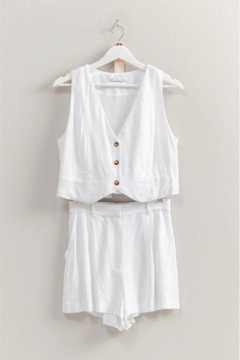 White Rayon Linen Vest and Shorts Set - STYLED BY ALX COUTUREOutfit Sets